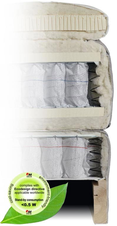 In a Tallinn bed measuring 180x200cm, there are a total of: 10,800g of wool (60%) and cotton (40%) layers. 1,658 pocket springs. The weight of the 180x200cm bed is a total of 261kg